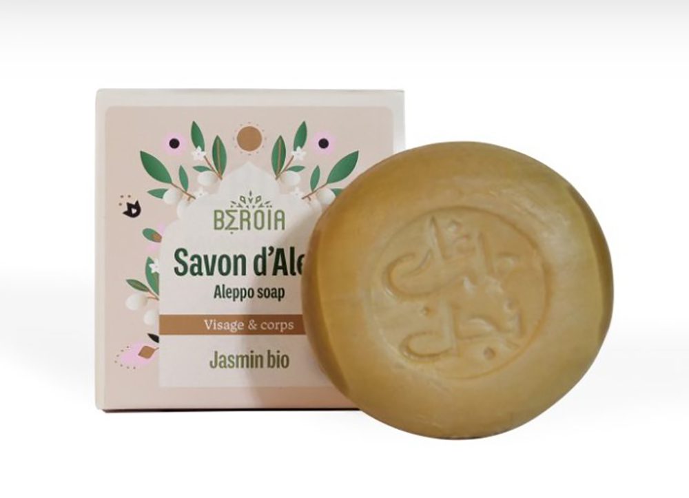 De biologische Aleppozeep met jasmijn van Beroïa, ontwikkeld in Frankrijk en gemaakt in Syrië, combineert de voorouderlijke voordelen van Aleppozeep met de betoverende essentie van jasmijn.