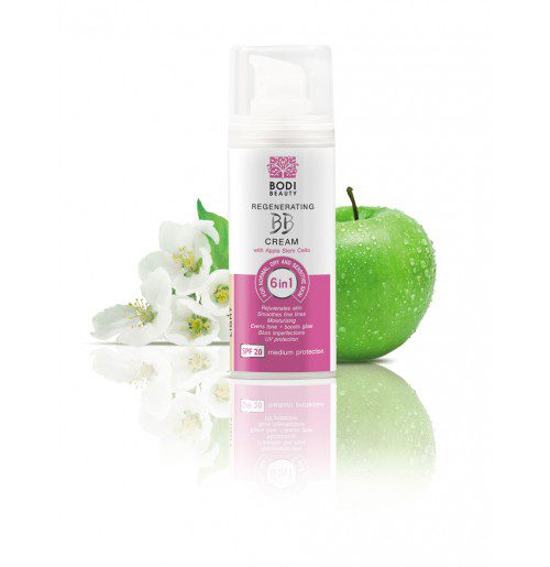 De krachtige cocktail van arganolie en vitamines verbetert de elasticiteit van de huid, stimuleert efficiënt de stofwisseling en celvernieuwing. De producten in de Regenerating BB CREAM 6 in 1 serie met appelstamcellen zijn hypoallergeen, bevatten geen parabenen en minerale oliën. Dermatologisch getest!