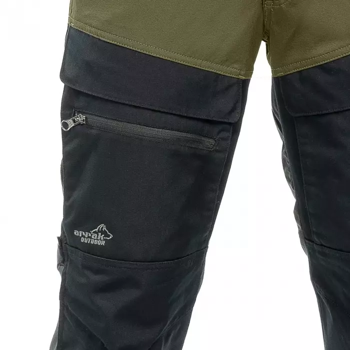 De broek is gemaakt van flexibel stretchmateriaal voor de beste pasvorm en met elastische taille. Versterkte panelen gemaakt van duurzaam polyester / katoen materiaal. De broek is DWR behandeld maar kan ook gemakkelijk geïmpregneerd worden om nattigheid te weerstaan.