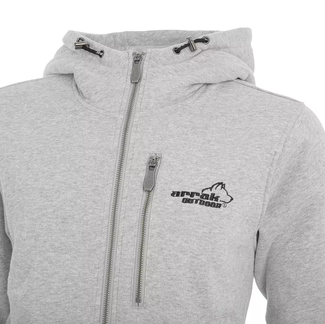 Arrak Sporty Hood Dames Grijs. Een super mooie kwaliteit capuchon in een zwaarder sweatshirt materiaal in 80% katoen / 20% Polyester. De stof heeft een zachte geborstelde buitenkant en geborsteld binnenkant.