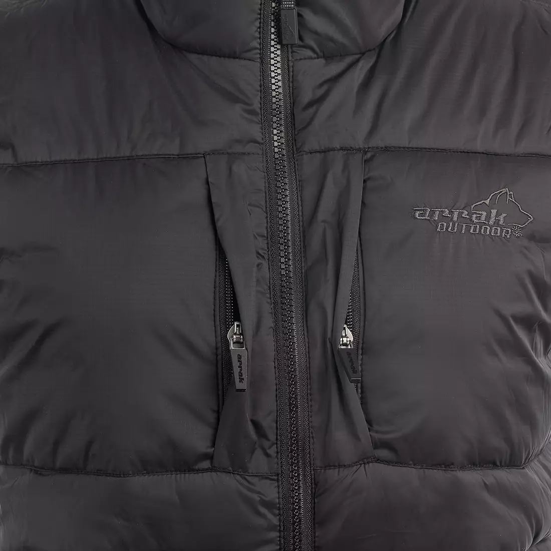 Voorzakken met ritssluiting en 2 verborgen borstzakken met ritssluiting. 2 open binnenzakken. Tunnelzak op de rug met ritssluiting.