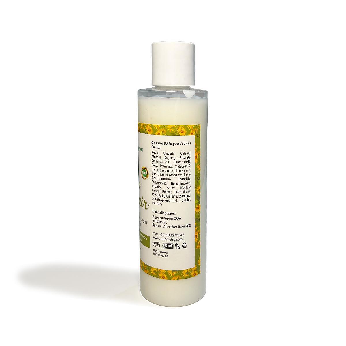 Arnica – Arnica- extract stimuleert de perifere bloedcirculatie naar de hoofdhuid en voedt de haarwortels.