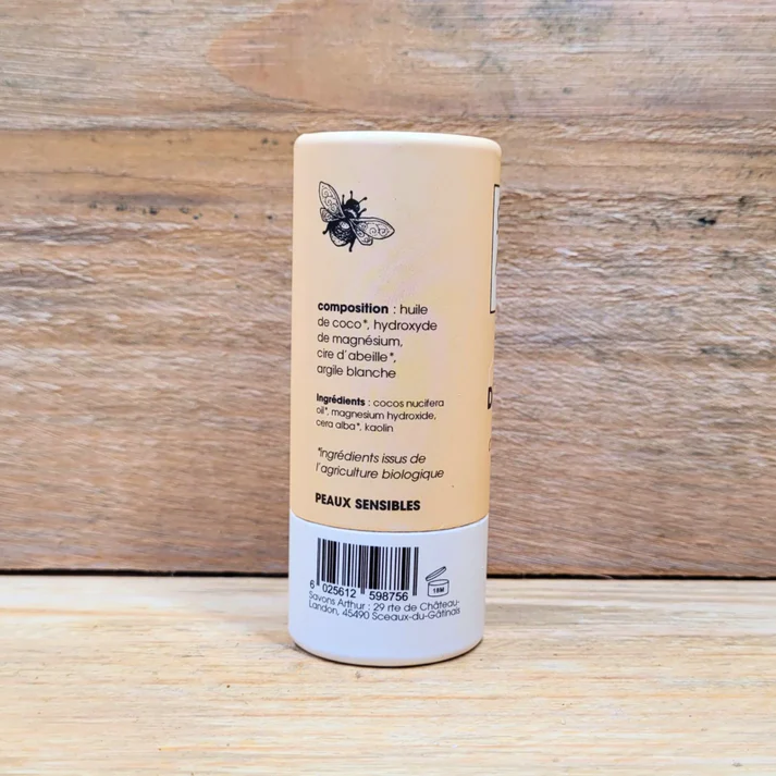 Ingrediënten: kokosolie, magnesiumhydroxide, kaolien, witte bijenwas.