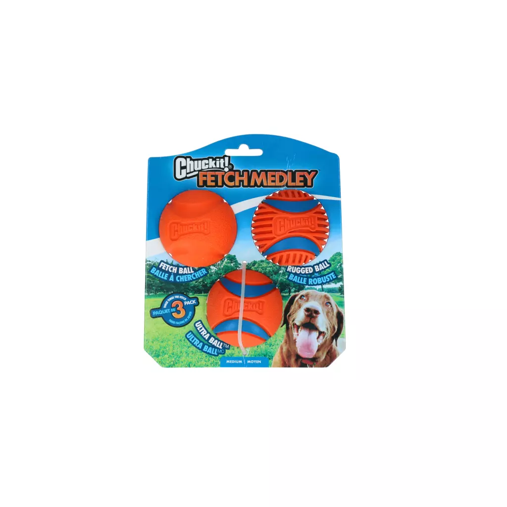 Met de Chuckit! Fetch Medley Gen 3 wordt de hond gestimuleerd om te rennen, springen en actief te achtervolgen. De verschillende ballen zorgen voor uiteenlopende stuiter- en rolpatronen, waardoor de hond steeds alert moet blijven. Dit draagt bij aan spieropbouw, uithoudingsvermogen en algehele conditie.