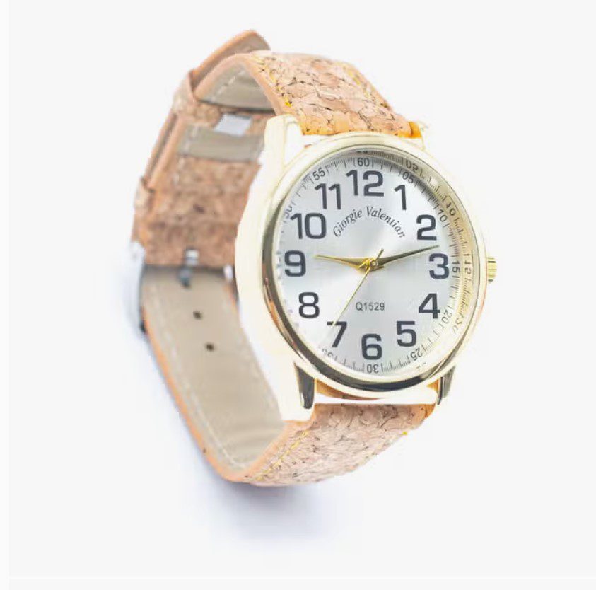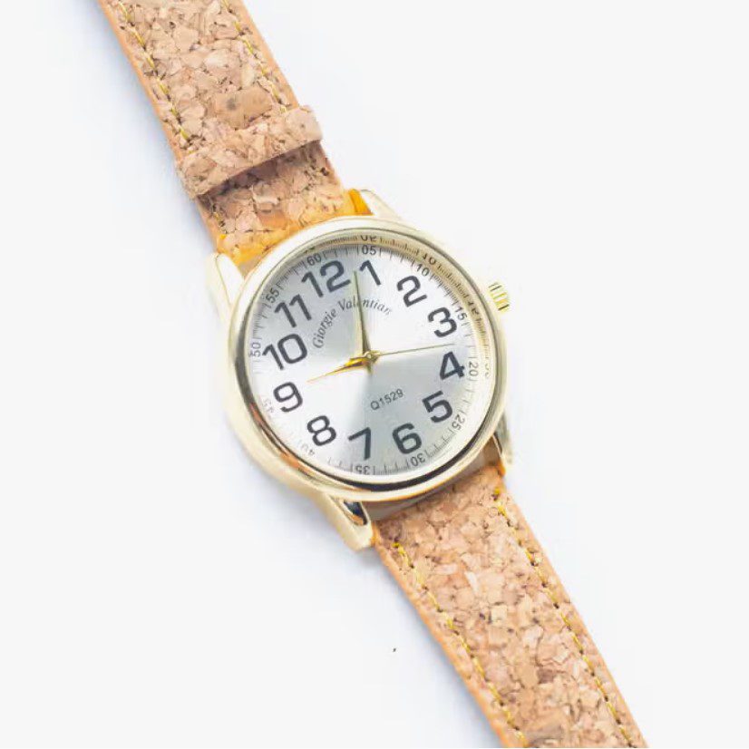 Een prachtig horloge met een kurken band met een eenvoudig maar toch stijlvol design.
