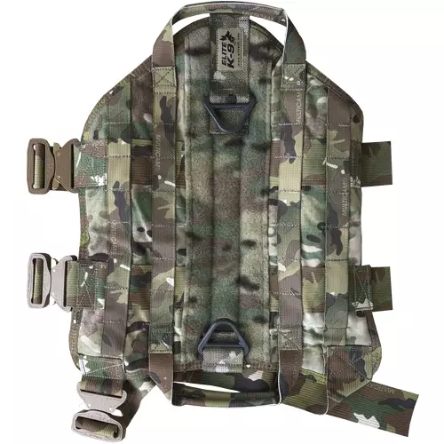 - Mil-Spec hardware en webbing die sterk genoeg is voor snel touwtrekken, abseilen, parachutespringen, klimmen en alle andere K-9-taken.