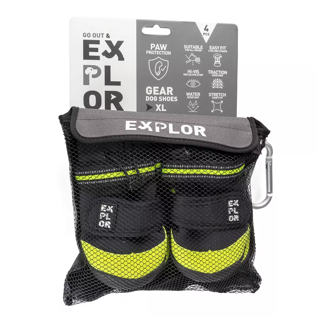 Geef je hond het comfort en de bescherming die hij verdient met de EXPLOR GEAR Hondenschoentjes Zwart/Neon.