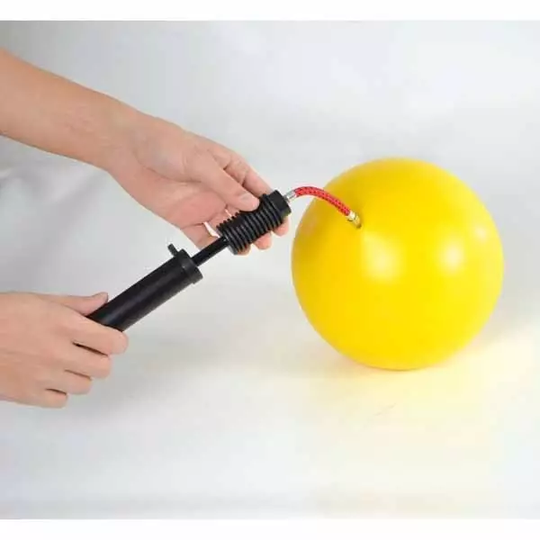 De pomp werkt volgens een klassiek naaldsysteem, waarmee je gecontroleerd lucht kunt toevoegen. Zo bepaal je zelf eenvoudig de juiste stevigheid van de bal, afhankelijk van het type oefening of persoonlijke voorkeur.