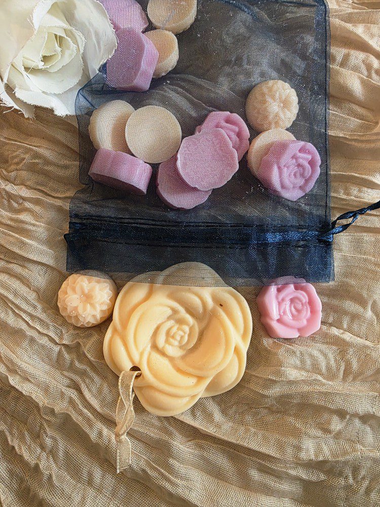 Handgemaakte navul set voor melts en geur hanger. Gemaakt van puur soja wax goed voor de milieu en gezondheid. De melts zijn 10 stuks en de hanger is 1 stuk. Sterk geurende artikelen in diverse elegante geuren. Te veel geuren aanwezig daarom wisselen we ze, makkelijke voor ons en leuk voor de klant, steeds nieuwe verassende geur. De geuren zijn luxe essenties van uitstekend kwalitatieve geuren van moderne tonen as kasjmier, patchouli, amber, oudh, zijde, roos en veel meer