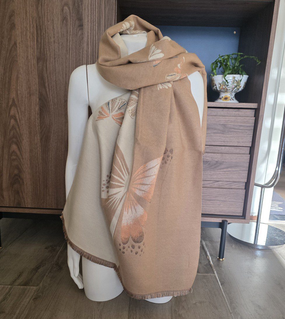 Heerlijk warme sjaal BEIGE herfst – winter – wol en viscose – warme scarf 1st
