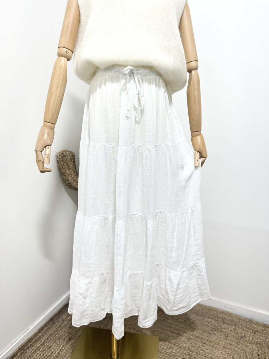 Heerlijke maxi linnen rok – met volants – elastische talie – aantrekkoord kleur WIT – maat 40/42