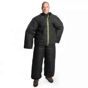 De K9 Factory Frans bijtpak compleet met armhoezen is opgebouwd uit meerdere lagen schokabsorberend materiaal dat de impact van beten en stoten opvangt.
