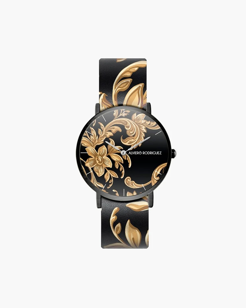 Het horloge is een innovatief model dat een eerbetoon is aan het vakmanschap en de creatieve waarden van Alviero Rodriguez. Gemaakt met een echt lederen band, met gedrukte patronen die het tot een exclusief accessoire maken. Alle producten van Alviero Rodriguez worden gemaakt in Italië en volgen een speciaal productietraject.