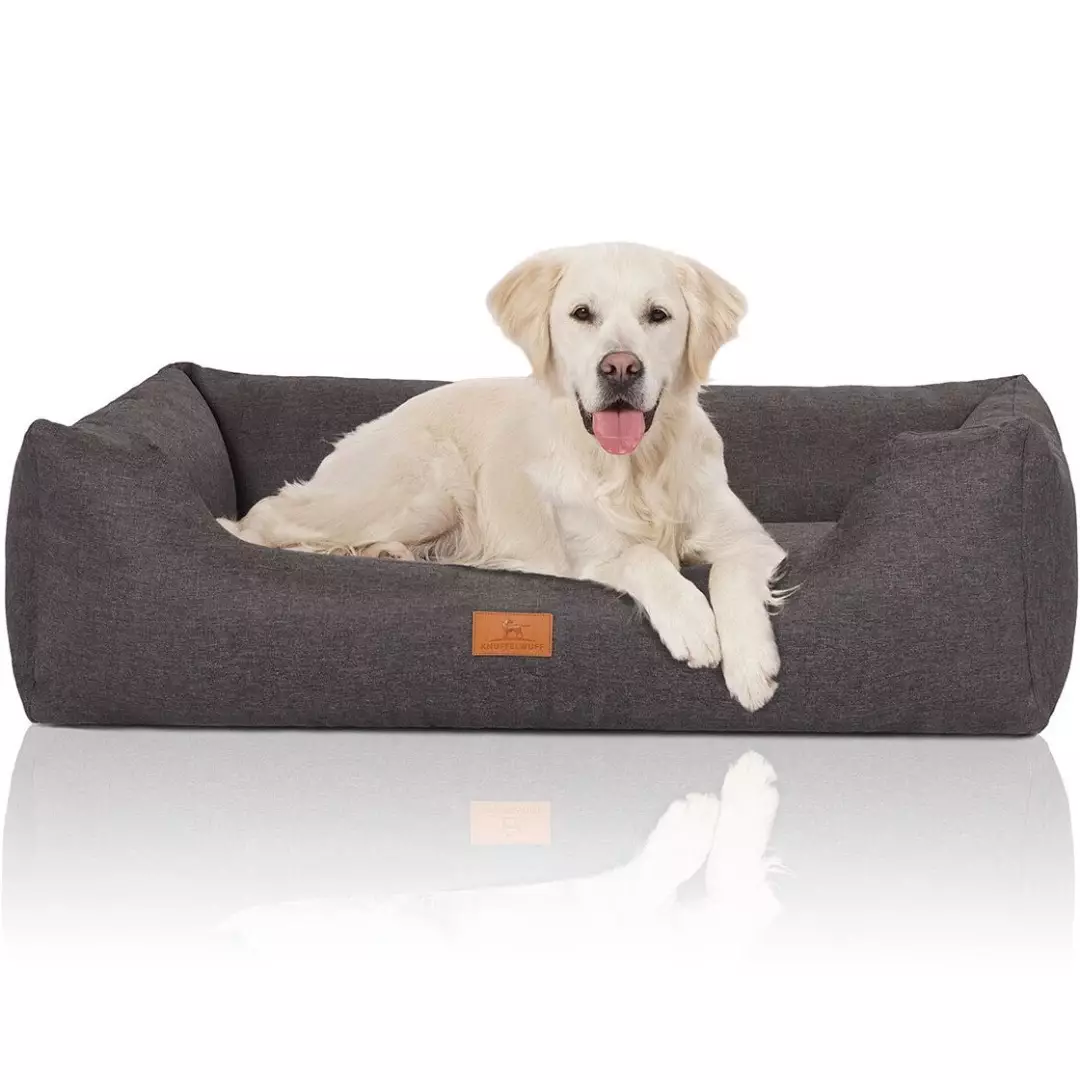 Een opvallend kenmerk van het Knuffelwuff Hondenbed Lotte is de hoger opstaande rand rondom het ligvlak. Deze rand biedt honden een gevoel van veiligheid en geborgenheid — ze kunnen hun kop er tegenaan leggen of zich tegen de zijkant nestelen. De randen zijn zacht maar stevig genoeg om hun vorm te behouden, waardoor het bed ook na intensief gebruik stabiel blijft. Dit maakt het bed extra aantrekkelijk voor honden die graag beschut liggen.