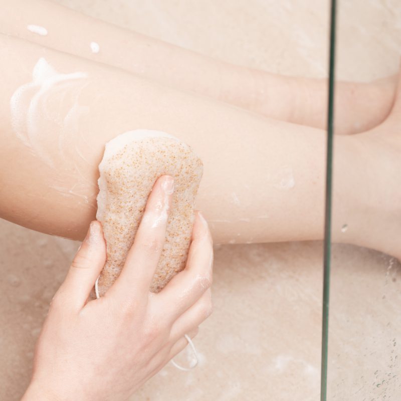 Zodra de konjac spons zacht is geworden, masseer je je lichaam er zachtjes mee in cirkelvormige bewegingen, met of zonder reinigingsproduct.