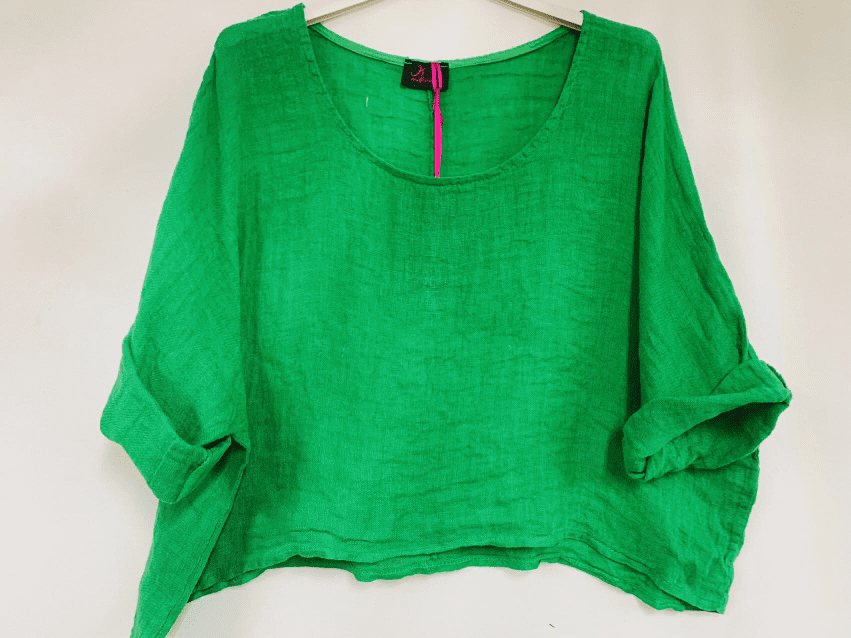 Brede leuke linnen topje met raglanmouwen, mag alleen dragen of met een hemdje onder in