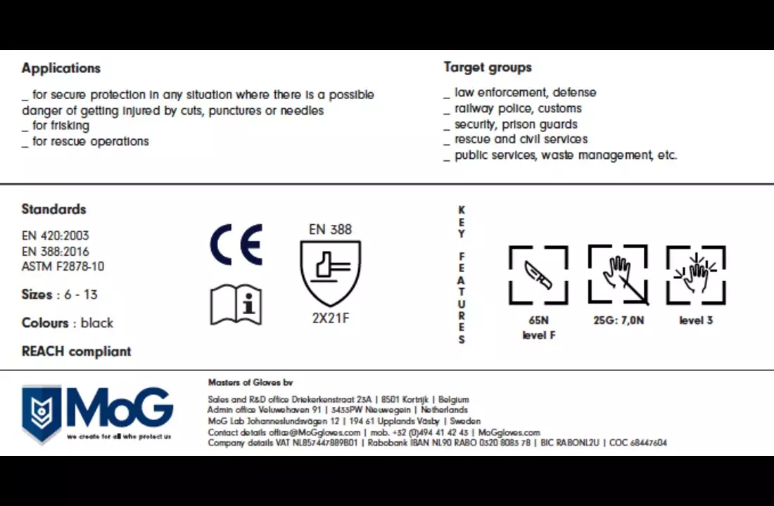 Bij de MoG GUIDE CPN 6202 Gloves Black is gekozen voor duurzame materialen die hun vorm en eigenschappen behouden. Dit zorgt ervoor dat de handschoenen ook op lange termijn hun beschermende en functionele eigenschappen behouden.