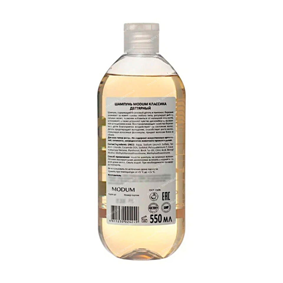 - Modum Classics Tar Shampoo is een effectief product voor de verzorging van haar en hoofdhuid. De formule met berkenhars staat bekend om zijn reinigende en kalmerende eigenschappen. De shampoo helpt roos, overtollig talg en jeuk aan de hoofdhuid te verminderen, terwijl het haar vanaf de wortels versterkt. Het reinigt mild en laat een fris en gezond gevoel achter. Regelmatig gebruik bevordert de regeneratie van de hoofdhuid en voorkomt terugkeer van roos. Dit product is geschikt voor vet haar en haar dat gevoelig is voor roos. Gemakkelijk aan te brengen, maakt het haar zacht en verzorgd.