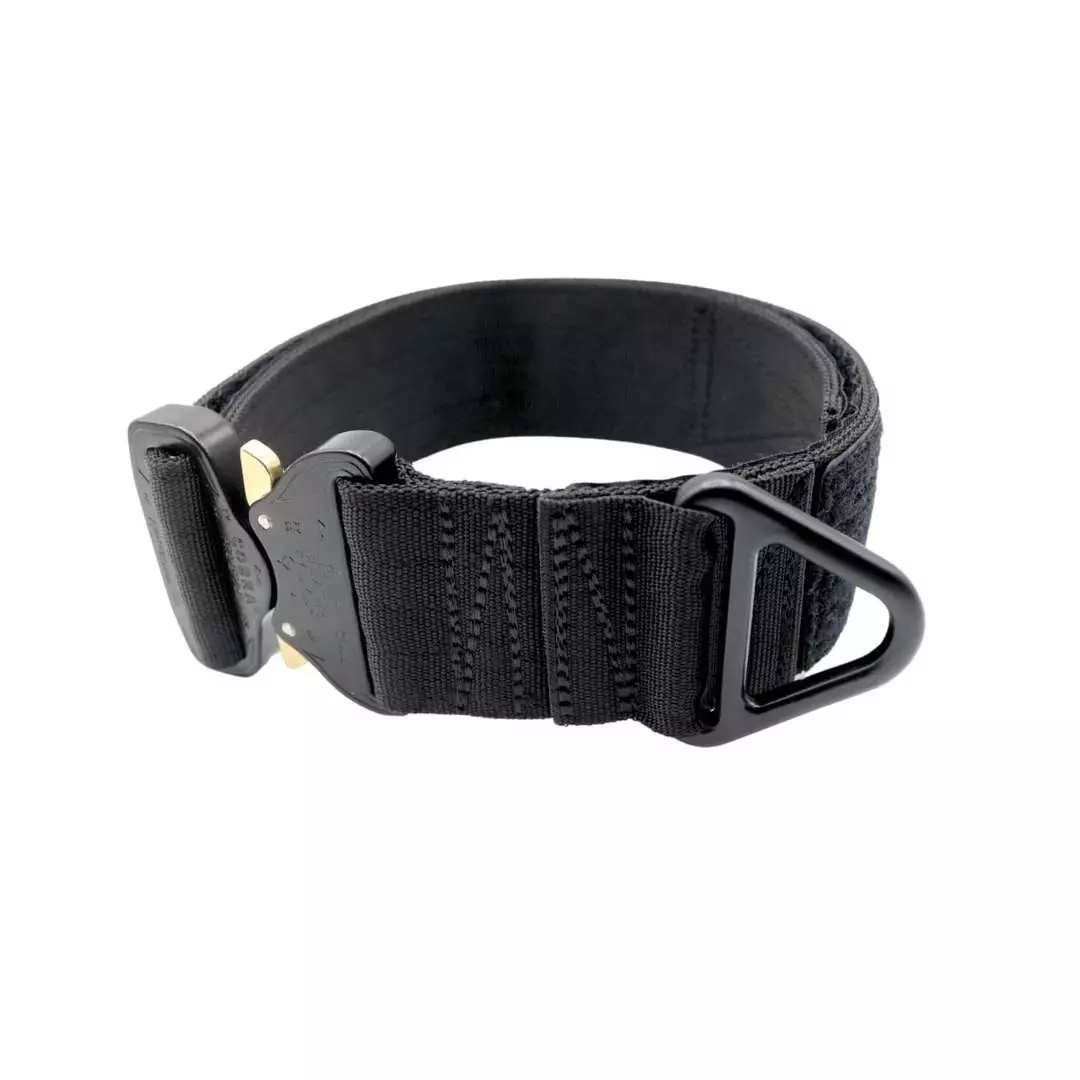 De halsband is voorzien van een originele COBRA® aluminium gesp van AustriAlpin. Deze gesp staat bekend om zijn extreme sterkte en wordt wereldwijd gebruikt in militaire en tactische uitrusting.