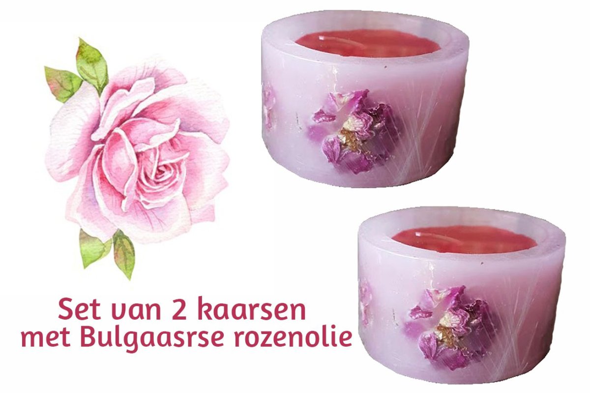 Handgemaakt met rozenolie van Bulgaarse roos en toepassingen van natuurlijke roze kleur.