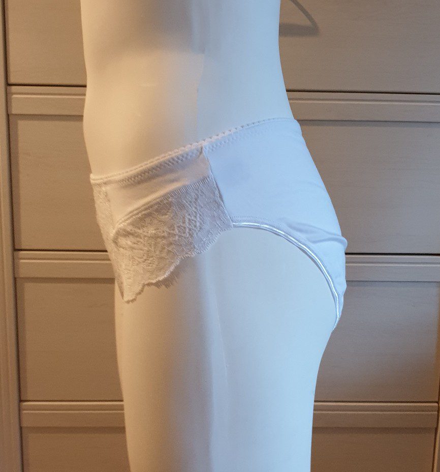 Erg mooi slip met hoge talie in wit kleur. In de voorkant is een kant in combinatie met katoen, 2 stuks