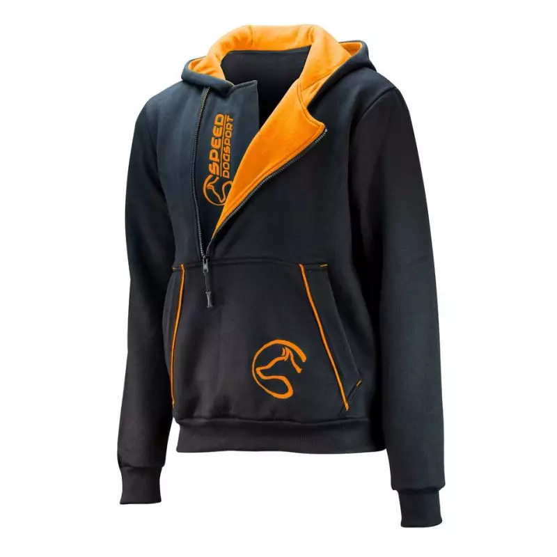 Modieuze sweater van Speed Dogsport® met offset rits, hoogwaardige logostick, capuchon en kangoeroezak voor en achter.